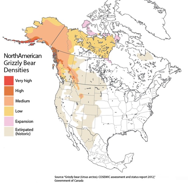 Grizzly bear Wikipedia Grizzly Bear: Current and Historic Range Map Sightline Institute.